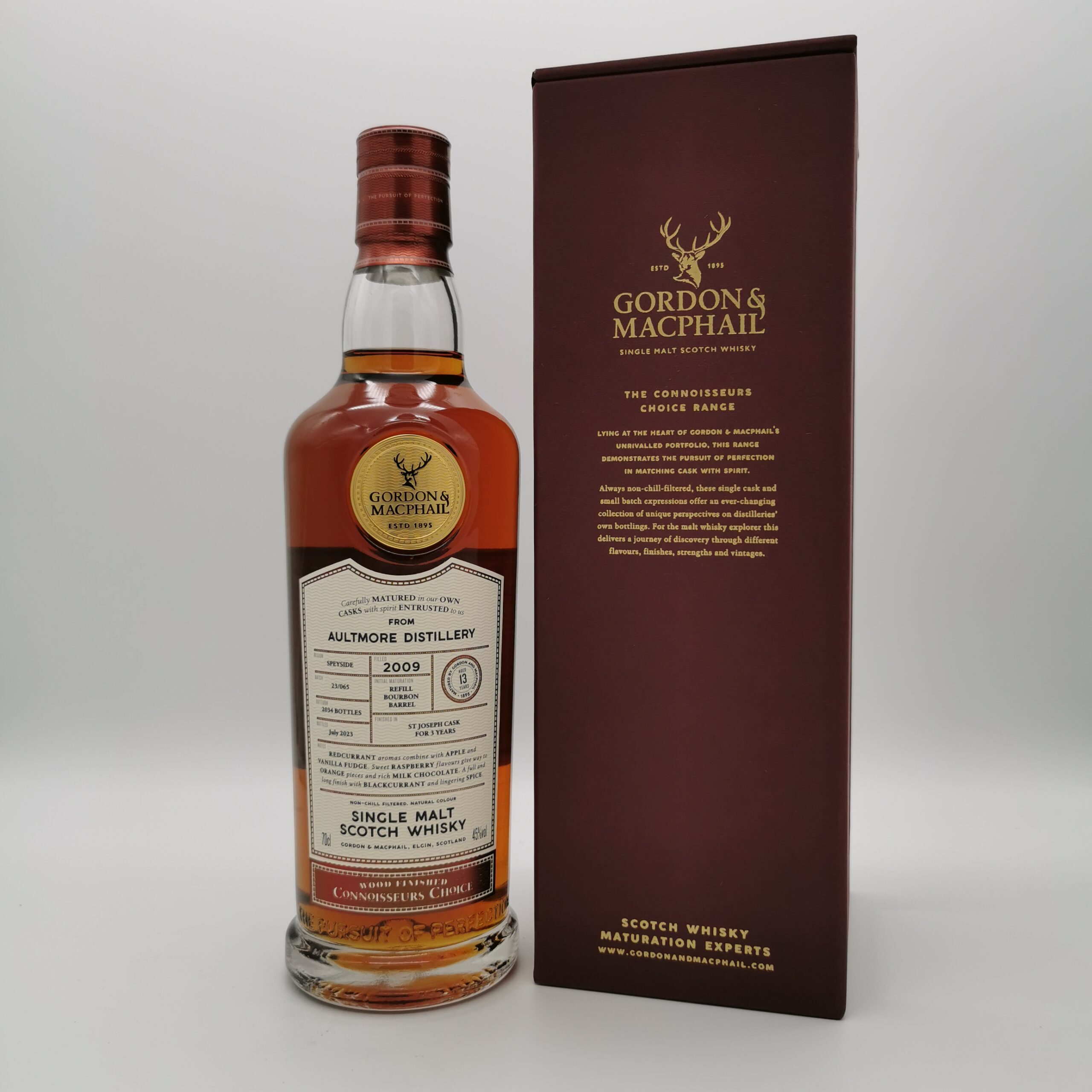 Dieser Aultmore 13 Jahre 2009/2023 wurde in der Connoisseurs Choice – Wood Finished Serie von Gordon & MacPhail abgefüllt. Die Abfüllung reifte zuerst in Bourbon Barrels und erhielt dann ein 3-jähriges Finish in St. Joseph Red Wine Casks.