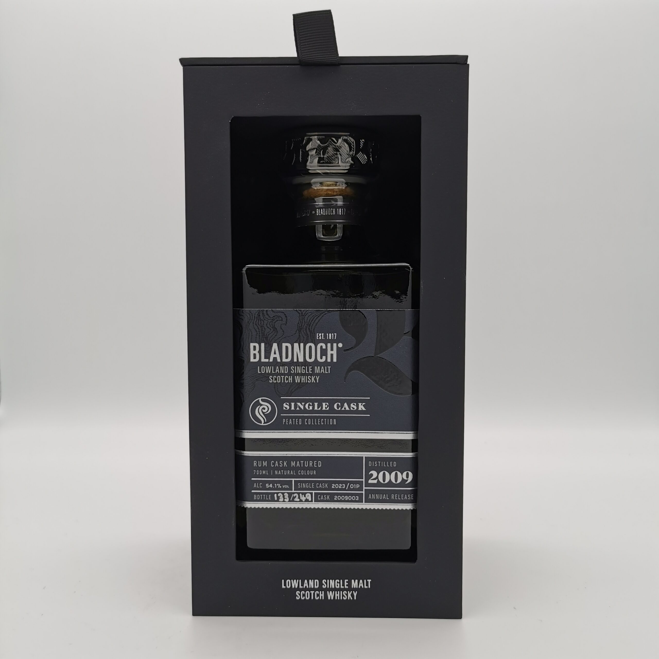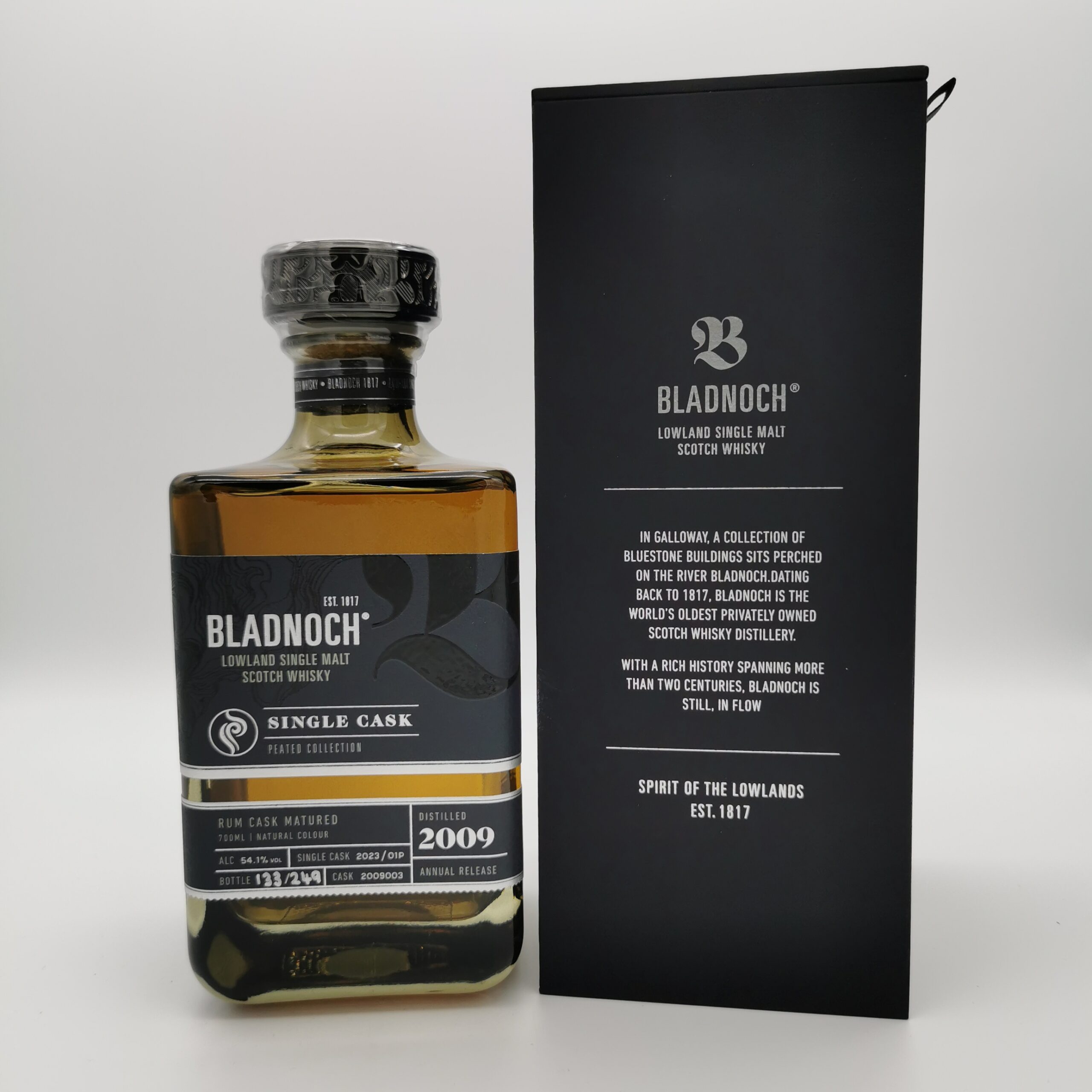 Dieser 13-jährige Bladnoch 2009/2023 wurde im Jahre 2009 destilliert, als die Brennerei kurz vor ihrer Schließung ein einziges Mal unter den Vorbesitzern eine Lkw-Ladung von 18 Tonnen schwer getorftem Malz verarbeitet hat, und durchgehend in einem Rum Barrel gereift, bietet dieses rare Single Cask den Bladnoch Single Malt mit einer bisher ungekannten Kombination von Aromen von Zuckerrohr, Kaminfeuer, floralen sowie Kräuternoten, getragen von 54,1% Abfüllstärke. Es handelt sich hierbei wohl um einer der aller größten Raritäten von Bladnoch, ein Muss für Bladnoch Fans!