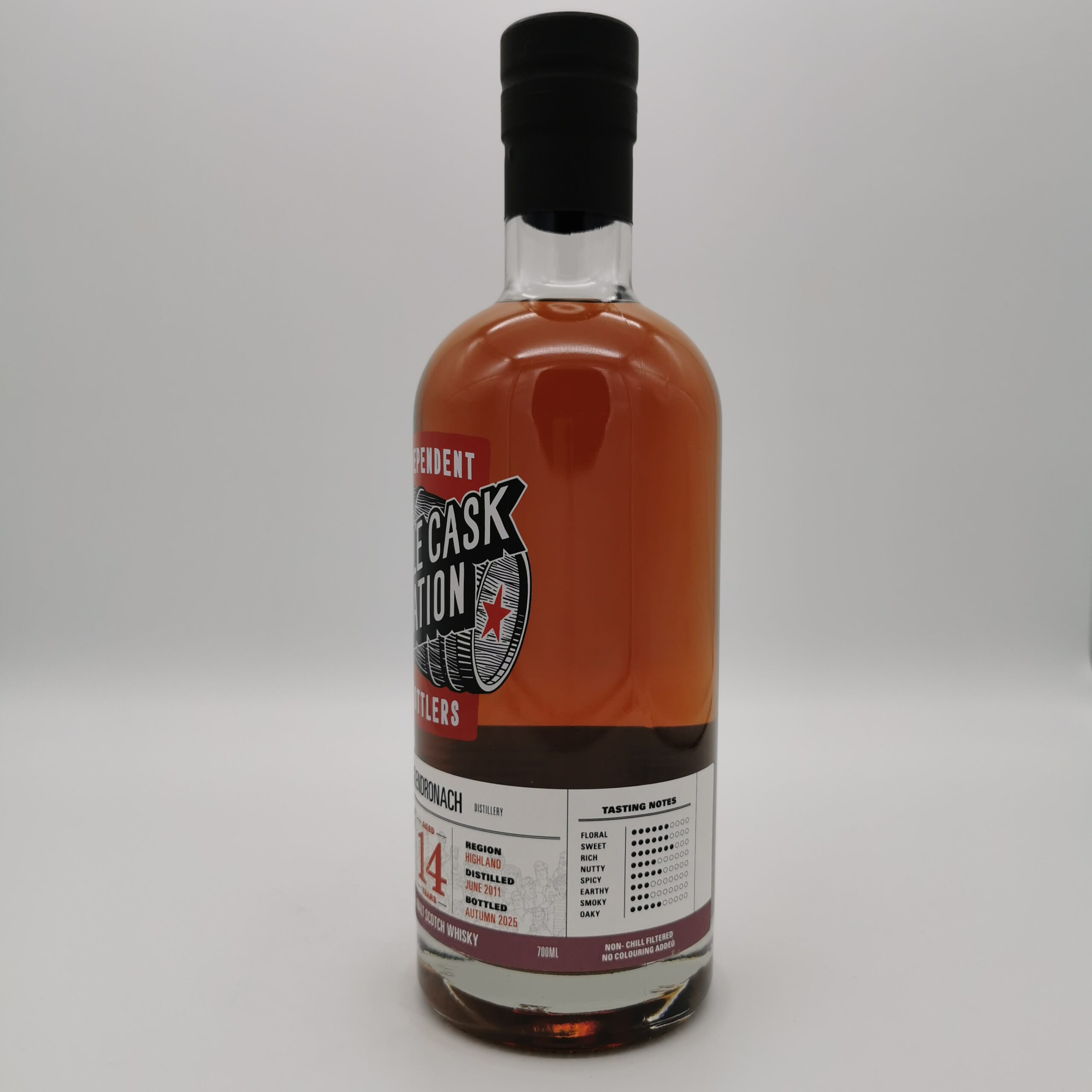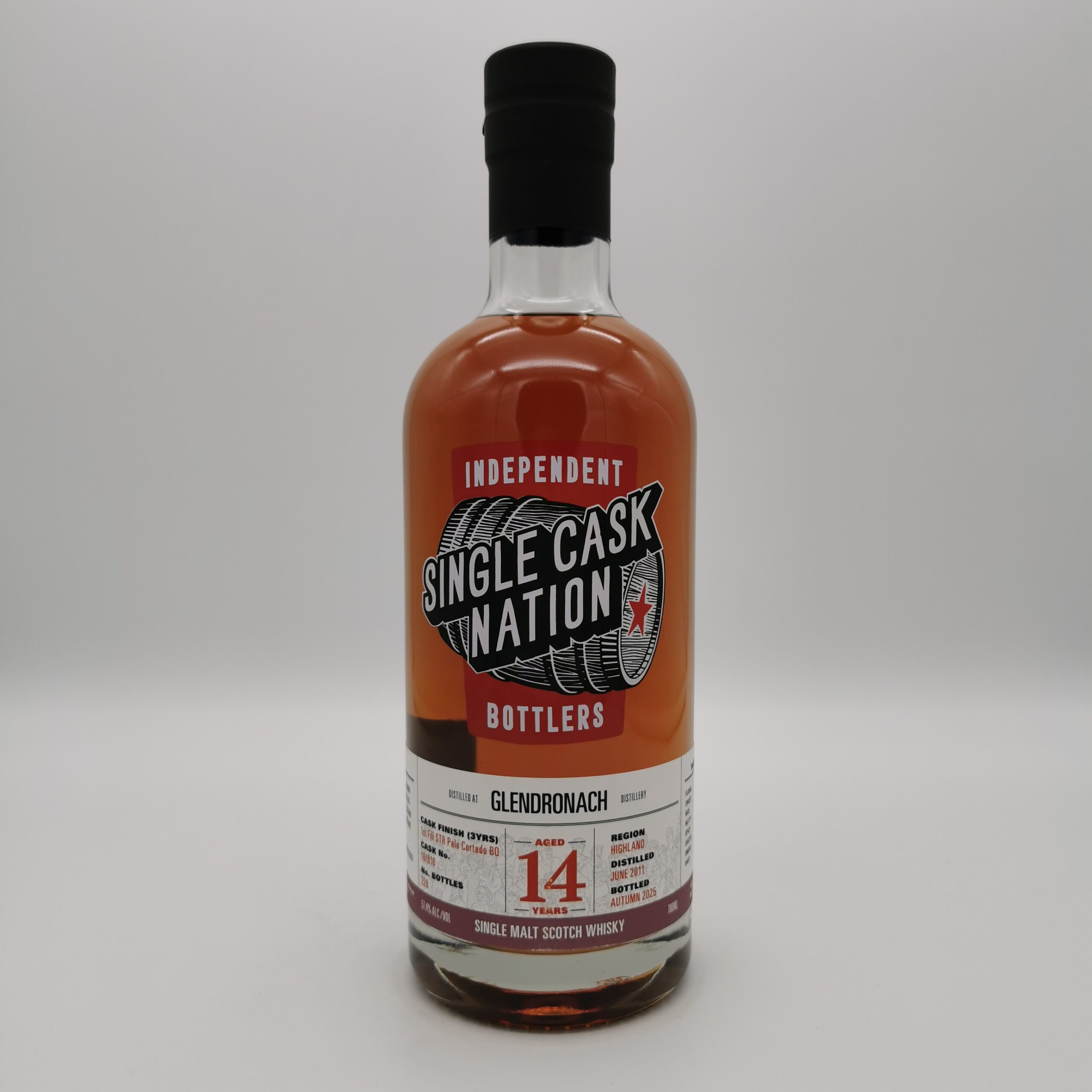 Dieser 14-jährige Glendronach wurde vom unabhängigen Abfüller Jewish Whisky Company in der Single Cask Nation Serie abgefüllt. Er erhielt ein besonderes Finish für volle 3 Jahre in einem seltenen 1st Fill STR Palo Cortado Barrique #161610.