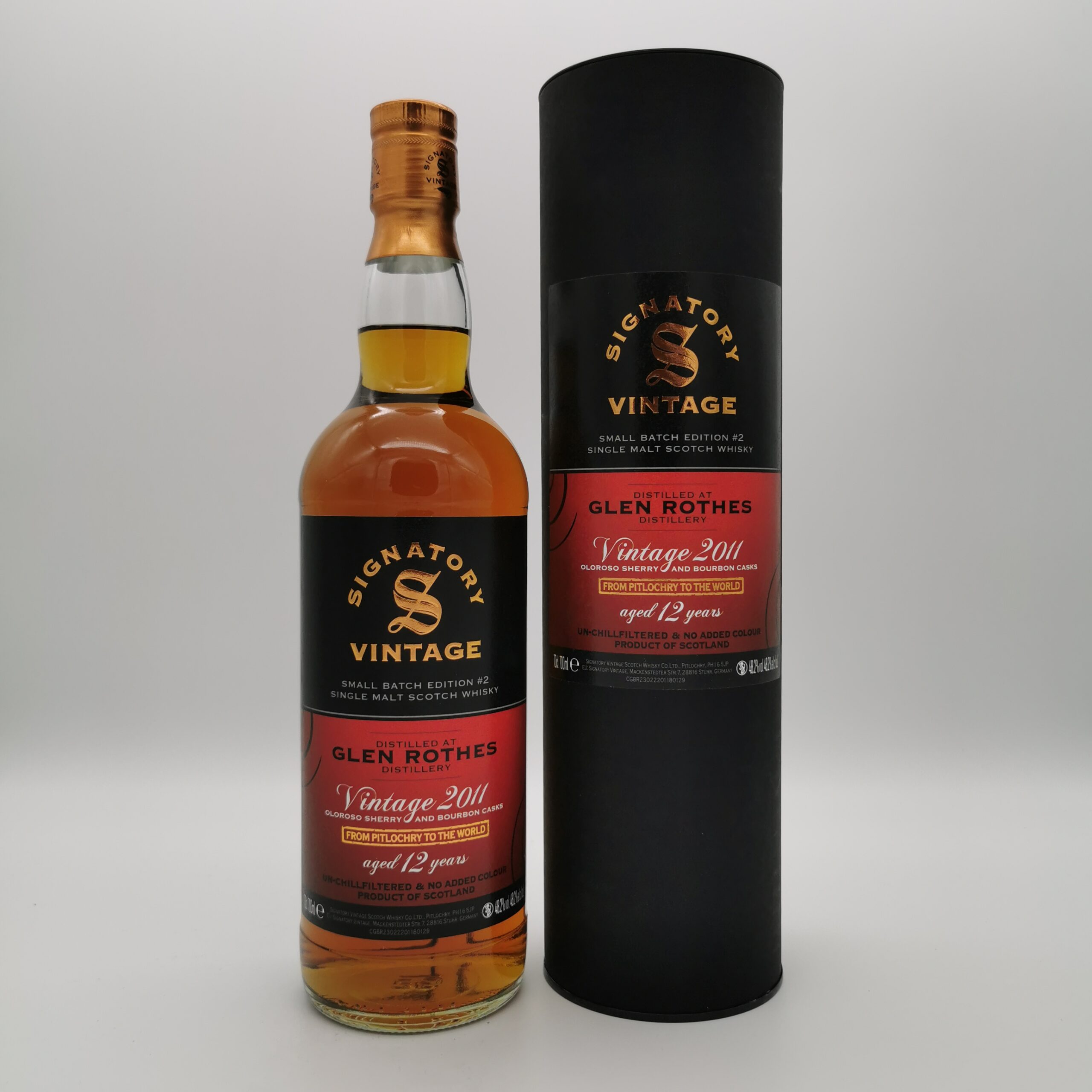 Dieser Glenrothes 12 Jahre 2011/2023 wurde vom unabhängigen Abfüller Signatory Vintage in der Small Batch Reihe exklusiv für Deutschland abgefüllt. Die Reihe erstrahlt in neuem Look und beginnt mit zwei spannenden neuen Abfüllungen. Eine davon ist dieser gelungene Glenrothes. Er reifte in 1st Fill Oloroso Sherry Casks und ehemaligen Bourbon Barrels zu einem interessanten Single Malt.