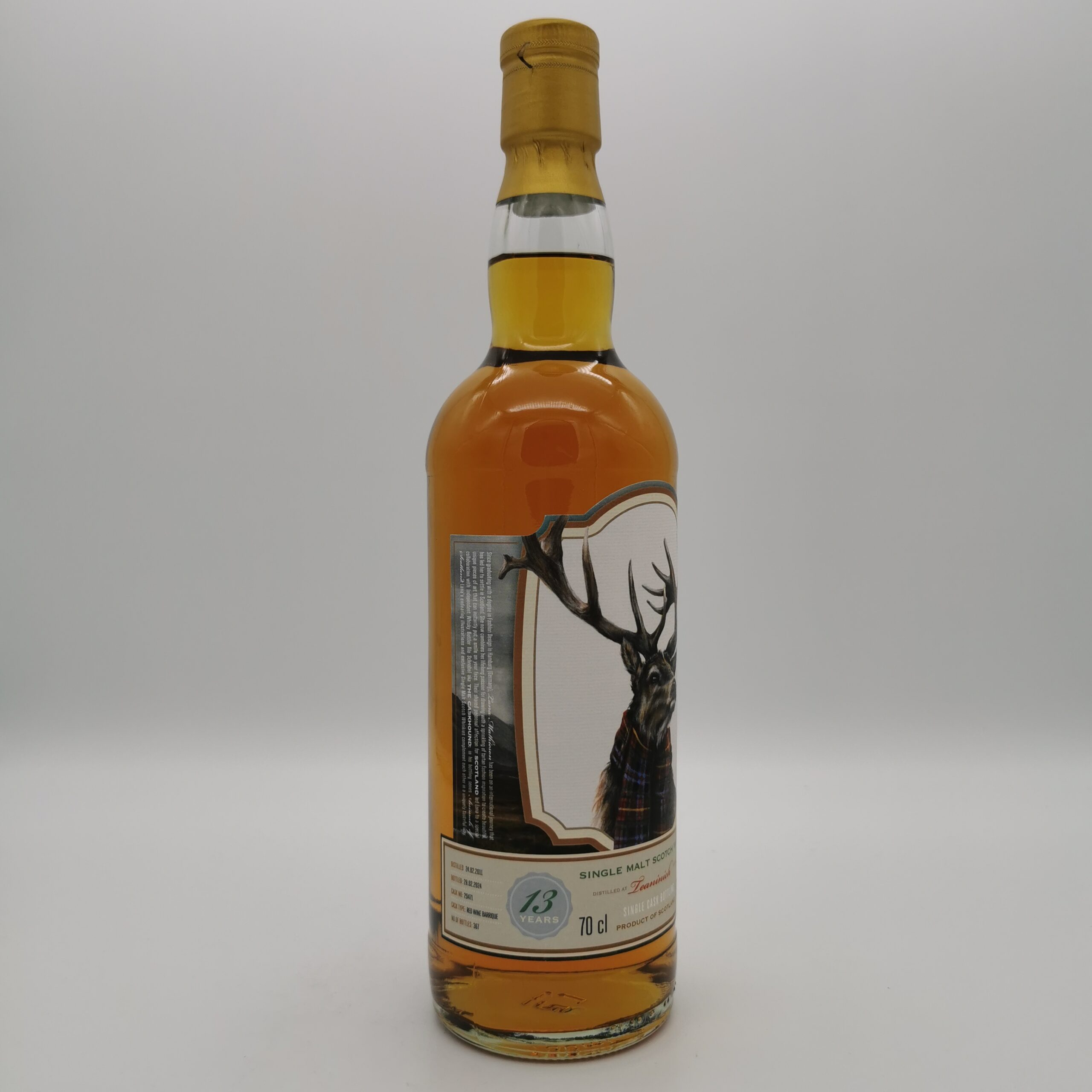 Dieser 13-jährige Teaninich ist die zweite Abfüllung der neuen Animals of Scotland Reihe by Lana Mathieson. Er reifte seine volle Zeit im Red Wine Barrique #29471 und ist auf nur 367 Flaschen limitiert.