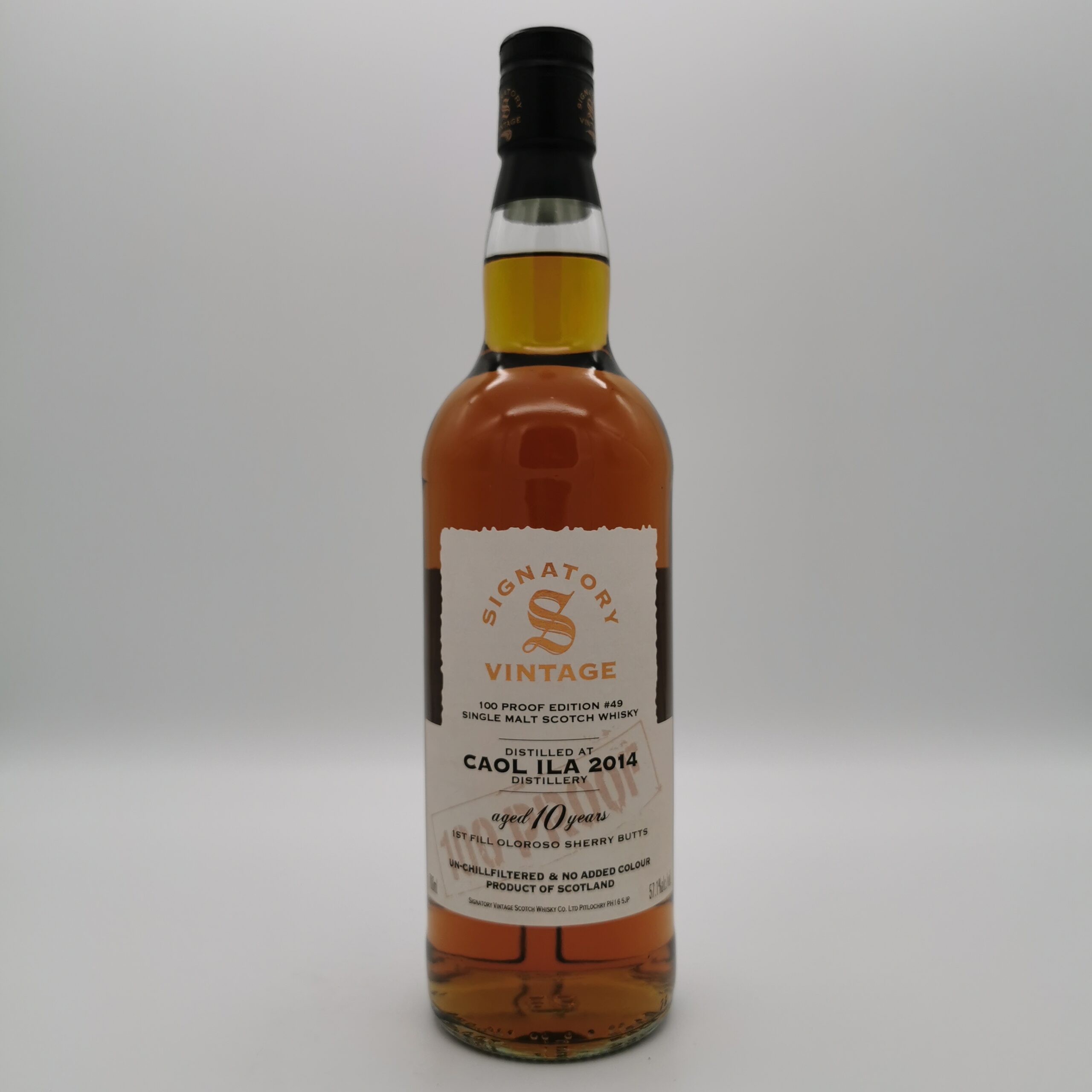 Dieser 10-jährige Caol Ila 2014/2025 wurde vom unabhängigen Abfüller Signatory Vintage in der neuen 100 Proof Edition abgefüllt. Mit 57,1% vol., dem Mindestgehalt, ab dem mit Alkohol getränktes Schießpulver entzündet werden kann, in elegante Flaschen gebracht, schließt die Reihe eine Lücke im Signatory-Sortiment. Dieser Caol Ila reifte im 1st Fill Oloroso Sherry Butt und überzeugt mit maritimen Torfrauch, dazu etwas Zitrus und dunklen Fruchtnoten!