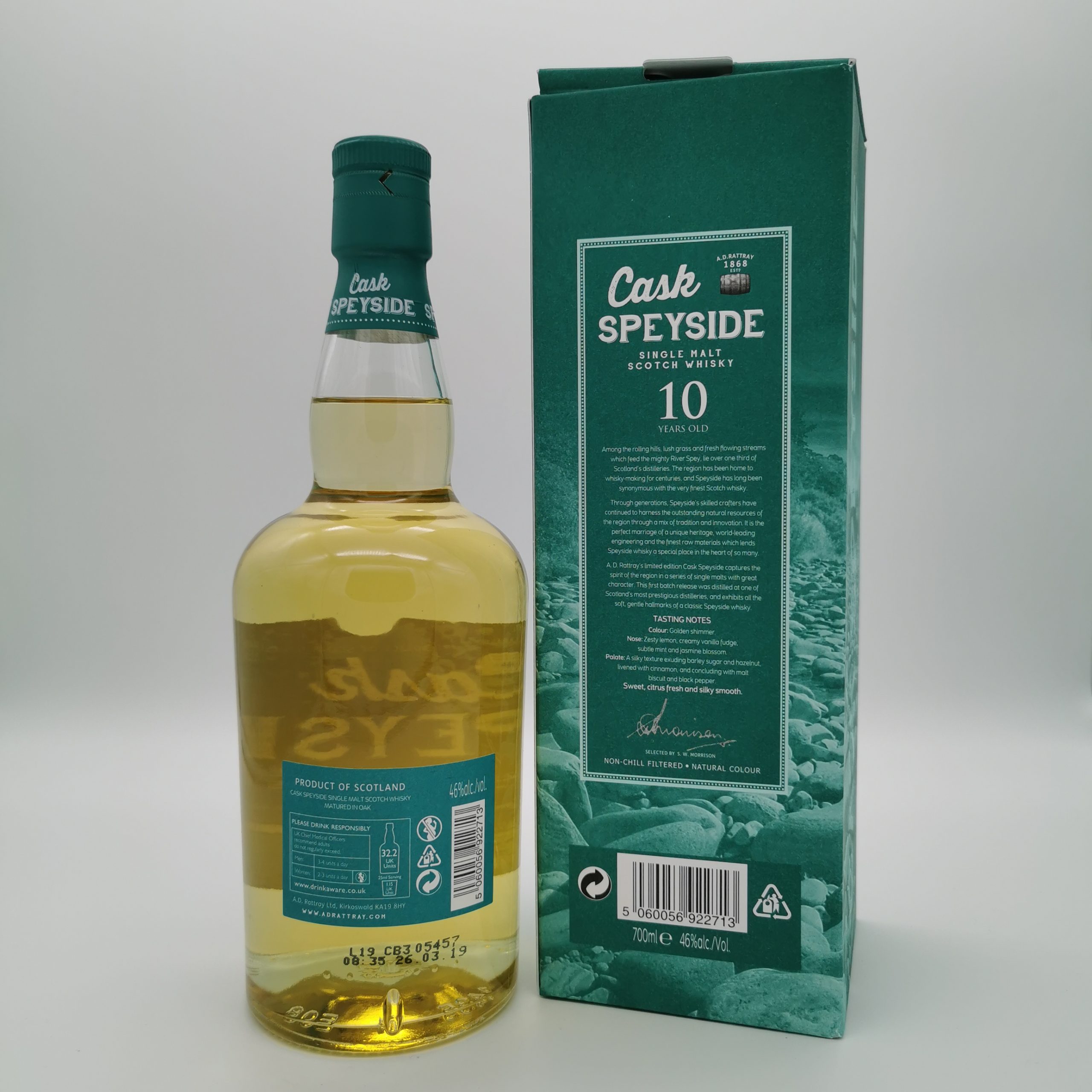 Dieser Cask Speyside 10 Jahre wurde vom unabhängigen Abfüllers A.D. Rattray abgefüllt. Er reifte in ehemaligen Bourbon Barrels und stammt aus einer sehr renommierten Speyside Brennerei. Der Cask Speyside 10 Jahre überzeugt mit cremiger Vanille und einer schönen
