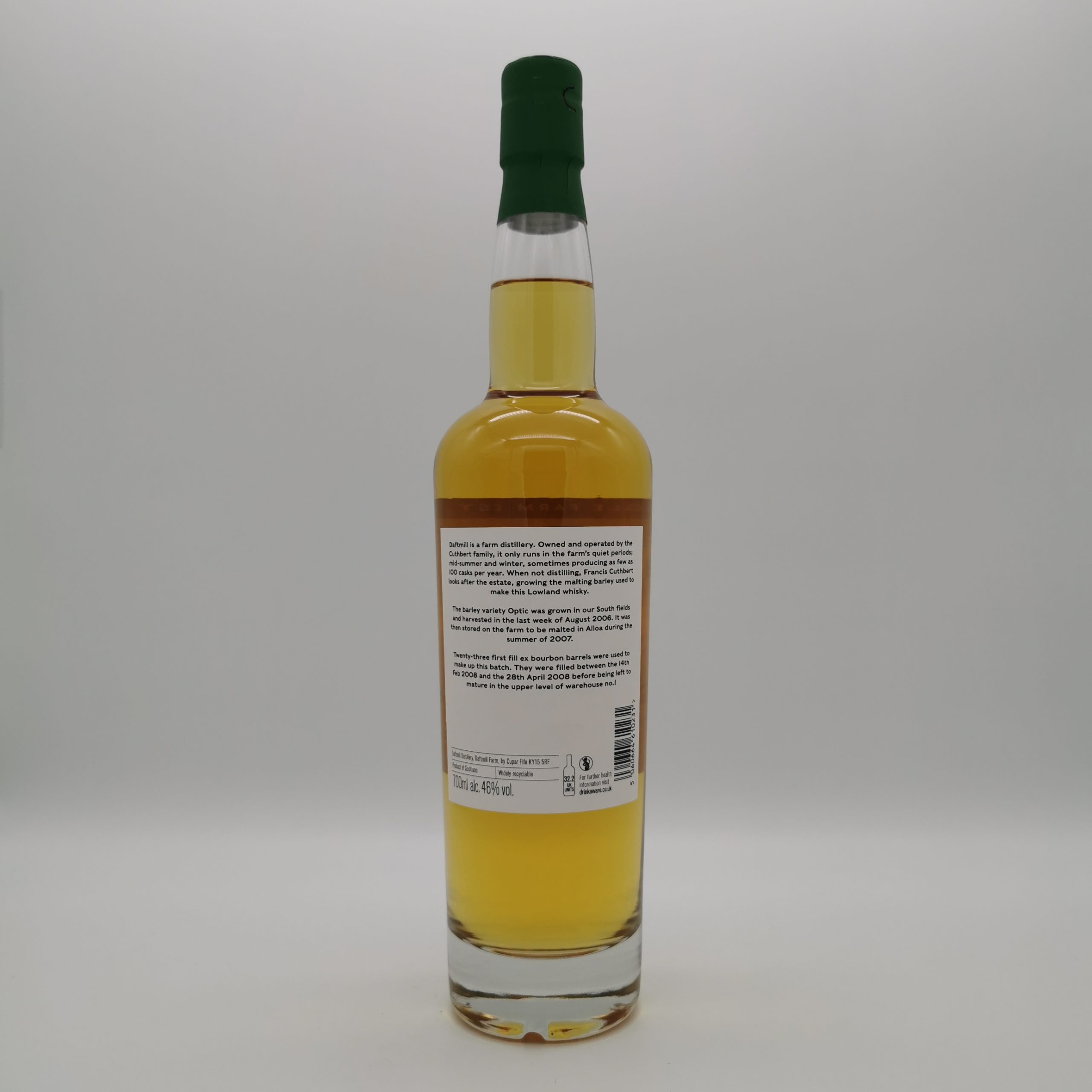 Auf der Daftmill Farm dreht sich eigentlich alles um den Anbau von Braugerste, die Aufzucht von Fleischrindern, um Kartoffeln, Karotten und Brokkoli. Seit 2018 ist der Betrieb der Familie Cuthbert aus Fife in den schottischen Lowlands jedoch fest auf der Whisky-Weltkarte vermerkt: Nach über 12 Jahren Wartezeit brachte Daftmill damals seinen ersten Single Malt auf den Markt. Die Cuthberts produzieren ihren Scotch in sehr kleinen Mengen von zum Teil nicht mehr als 100 Fässern im Jahr aus der eigenen Gerste. Gebrannt wird ausschließlich in der Nebensaison (Juni und Juli sowie im Winter), wenn weder Kartoffeln gepflanzt noch Gerste gesät werden muss.