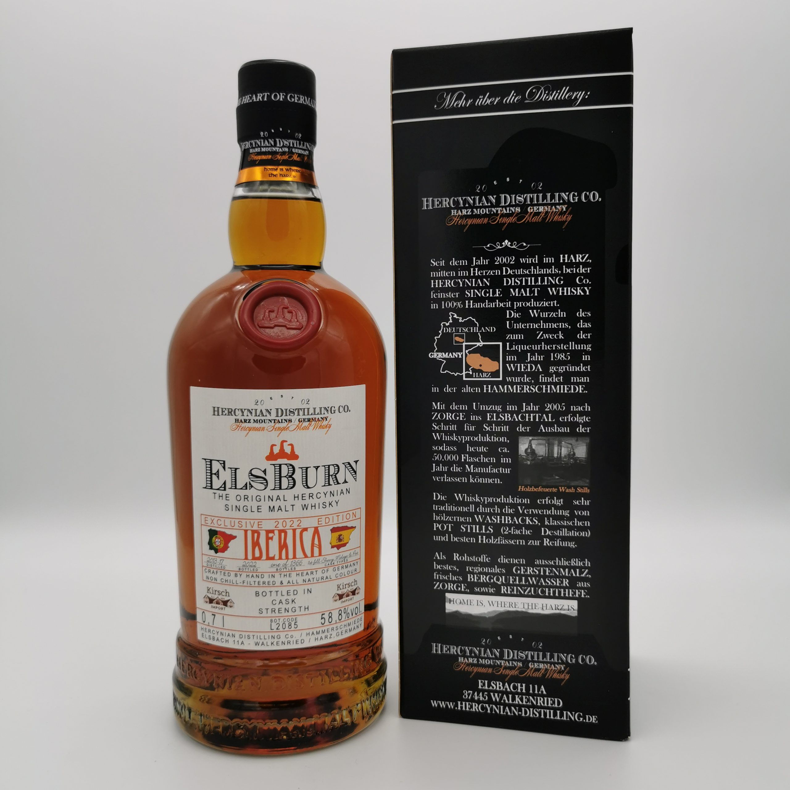 Exklusiv für unsere Kunden haben die Harzer einen Single Malt der Marke ElsBurn abgefüllt, der für Urlaubsstimmung sorgt. Der weder gefärbte noch kühlfiltrierte Hochgenuss strotzt vor südländischem Temperament: ElsBurn Iberica reifte ausschließlich in Fässern von der Iberischen Halbinsel. First Fill Sherry Casks, First Fill Malaga Casks sowie First Fill Port Casks verleihen der Exklusivabfüllung komplexe Fruchtnoten, die sich bei 58,8% vol. Cask Strength ungehemmt entfalten können.