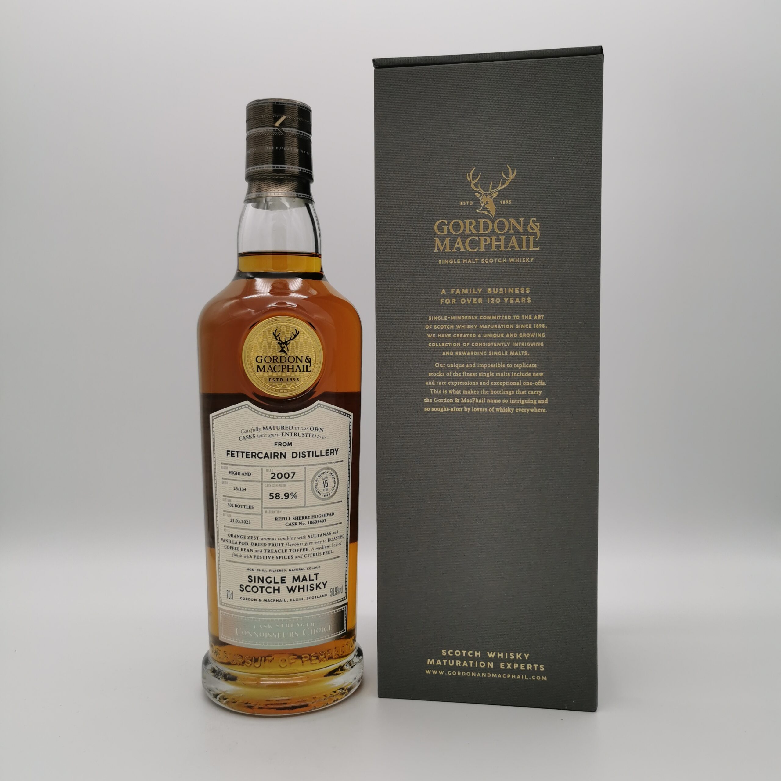 Der 15-jährige Fettercairn wurde vom unabhängigen Abfüller Gordon & MacPhail in seiner besonderen Connoisseurs Choice-Serie abgefüllt. Er reifte in einem Refill Sherry Hogshead #18605403 und begeistert mit Aromen von Orangenzeste und getrockneten Rosinen, Karamell, geröstete Kaffeebohnen und feine Holzwürze.