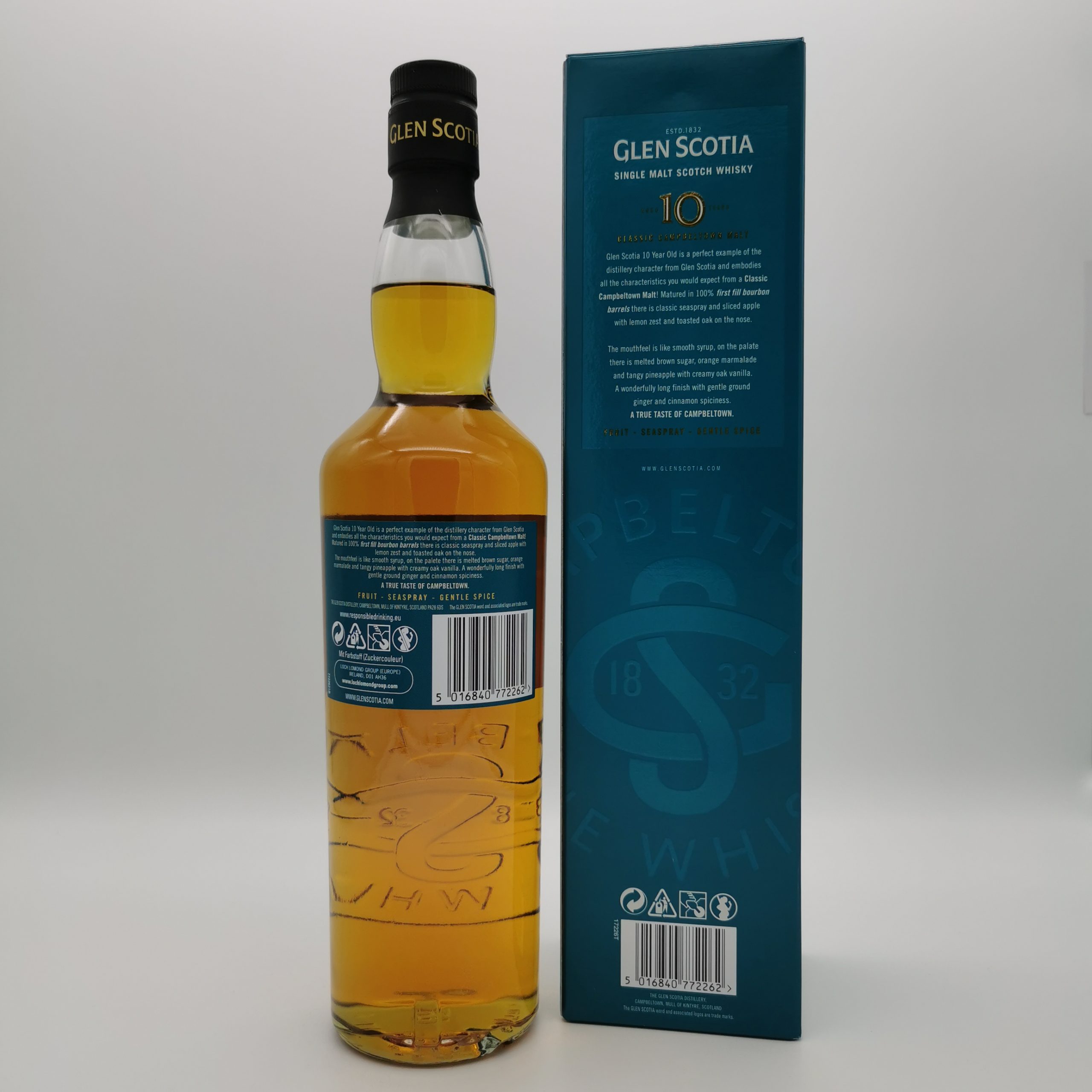 Dieser Glen Scotia 10 Jahre reifte in First Fill Bourbon Casks. Er ist ein ungetorfter Single Malt Whisky und bietet die perfekte Balance zwischen dem Charakter der Destillerie und dem Einfluss der Bourbon-Fässer.