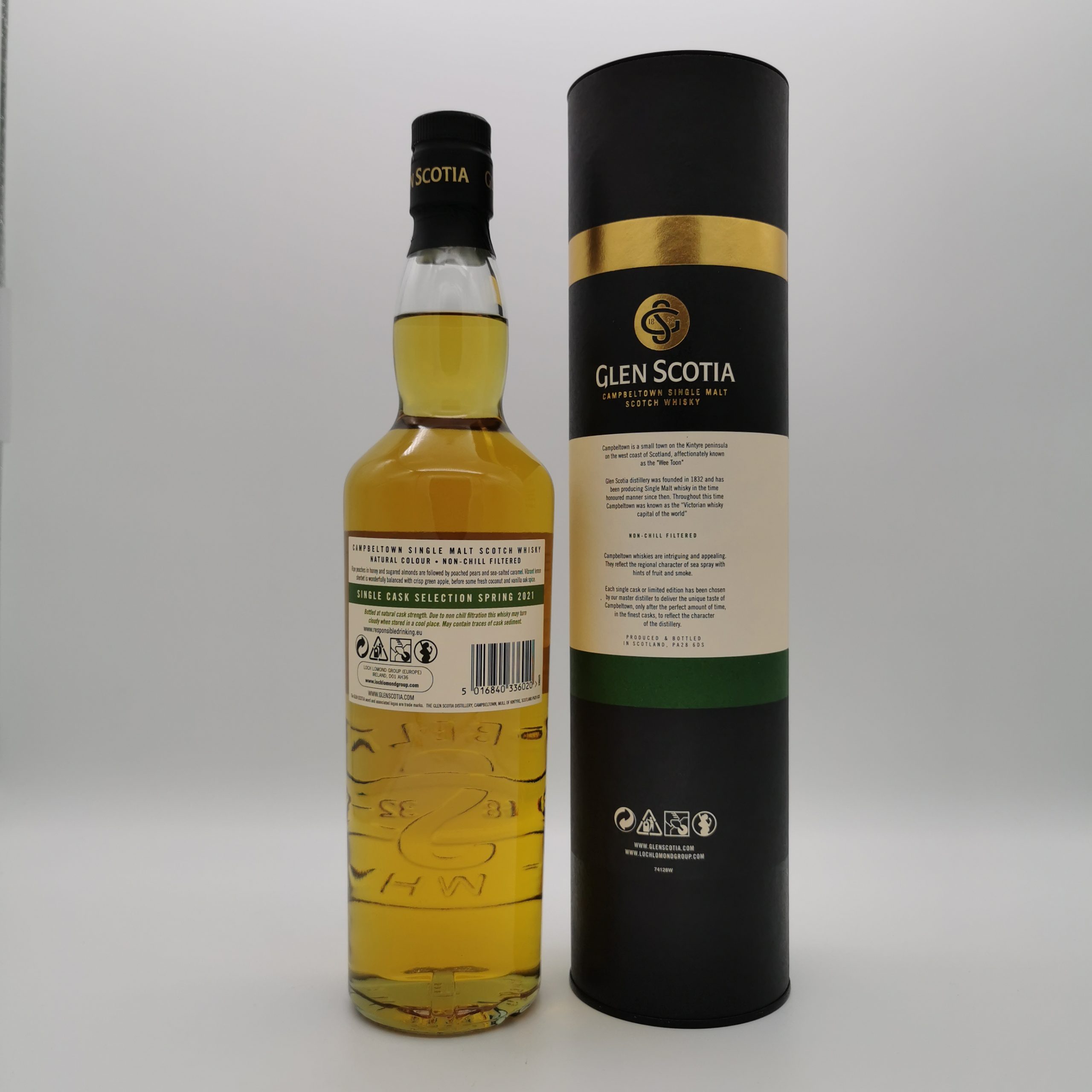 Dieser Glen Scotia ist Teil der Single Cask Selection Spring 2021. Dieser Glen Scotia 2013/2021 ist ein unpeated Malt und eine limitierte Single Cask Abfüllung der Glen Scotia Brennerei aus der Region Campbeltown. Er reifte im 1st Fill Bourbon Barrel Cask 483. Einst galt Campbeltown als Whiskyhauptstadt, doch heute finden sich dort nur noch eine handvoll Brennereien. Dieser Glen Scotia beschwört den maritim Charakter Campbeltowns wieder herauf. Er gibt Einblick in die Aromenvielfalt dieses Ortes.