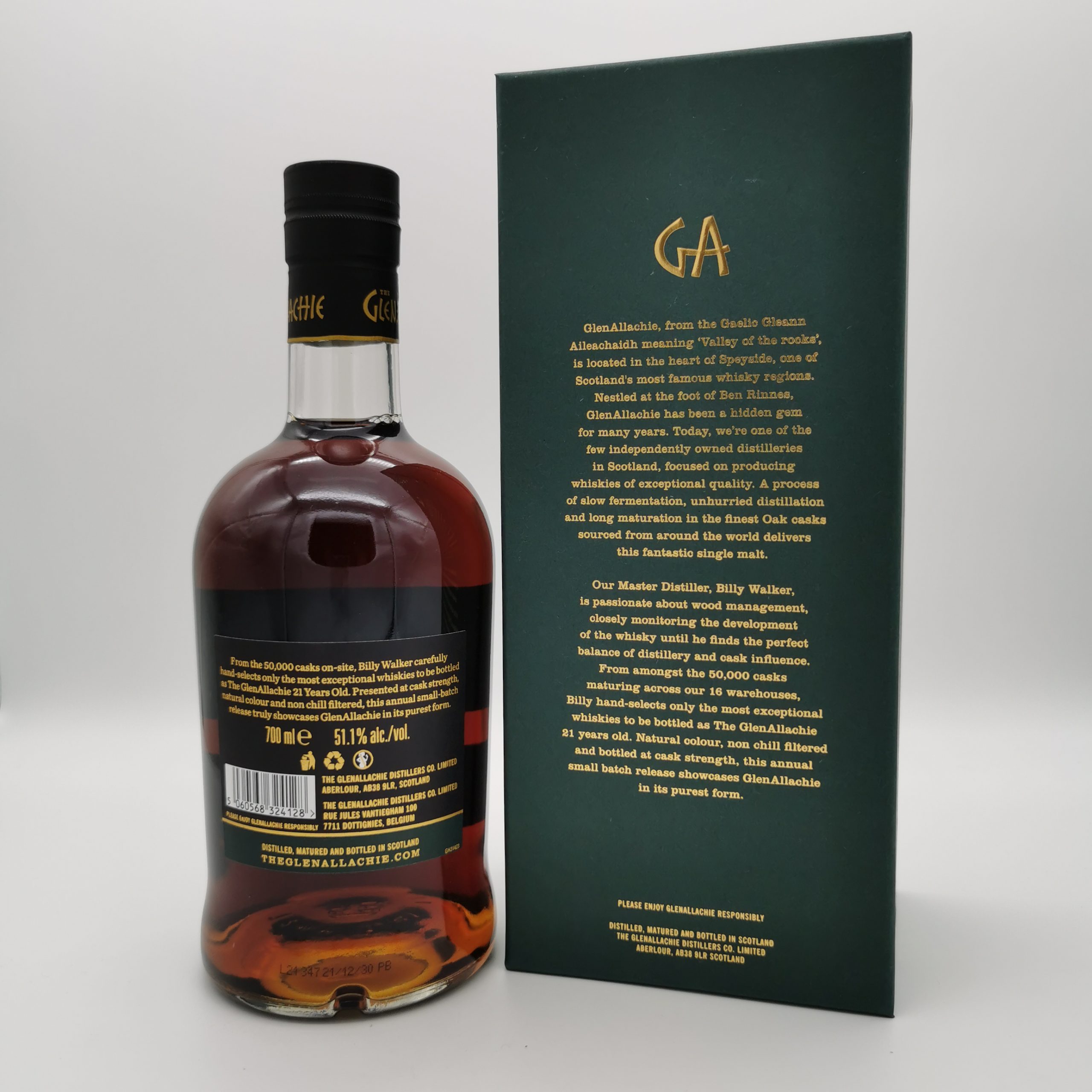 Abgefüllt in Cask Strength mit 51,1% vol., nicht kühlgefiltert und in natürlichem Mahagoniton, bietet der 21-Jährige Sherry-Raffinesse und GlenAllachie-Charakter in seiner vielleicht reinsten Form.
