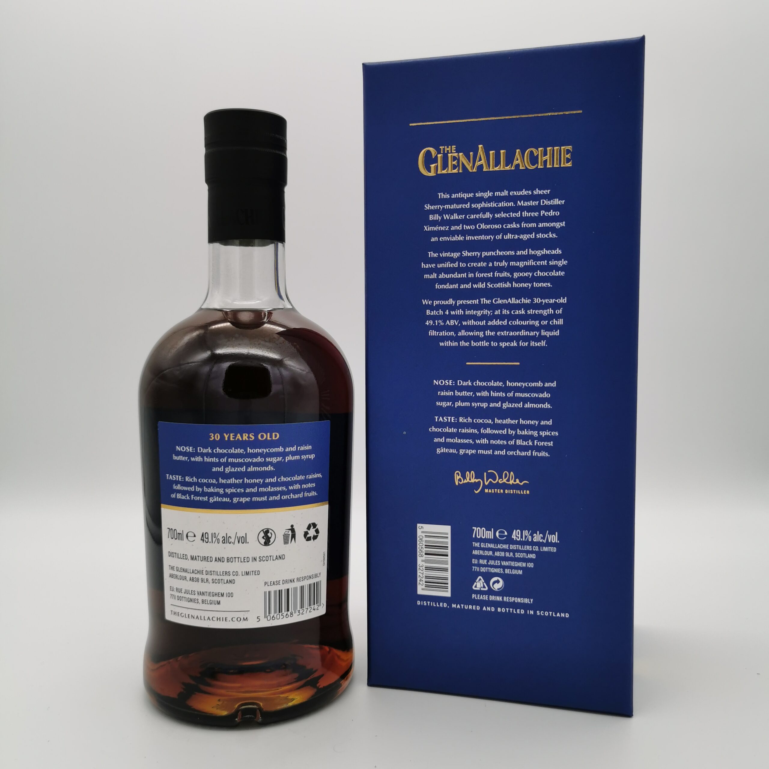 Dieser The GlenAllachie 30 Jahre strahlt – erstmals im neuen Look – pure, in Sherry gereifte Raffinesse aus. Drei alte Pedro Ximénez und zwei Oloroso Sherry Puncheons und Hogsheads aus dem beneidenswerten Bestand der Brennerei ergeben einen großartigen Single Malt mit einer Fülle von Waldfrüchten, zartschmelzendem Schokoladenfondant und wilden schottischen Honigtönen.