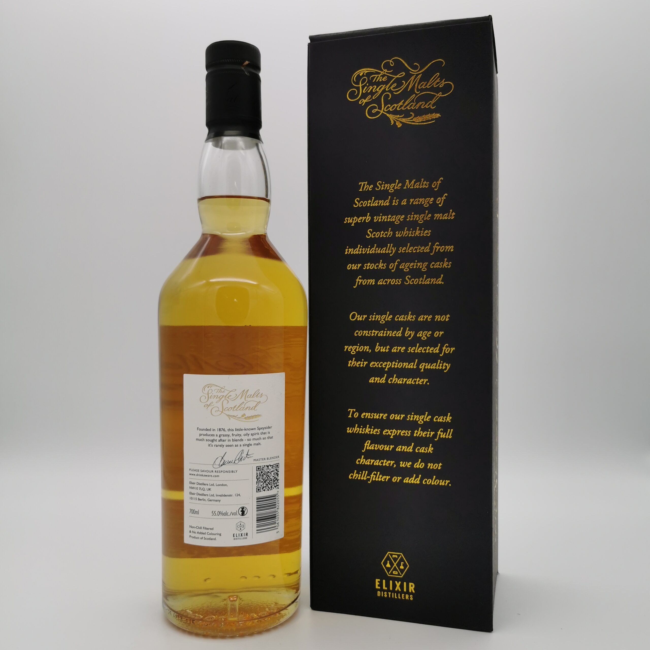 The Single Malts of Scotland steht Synonym für konstant herausragende Abfüllungen. Nicht weiter verwunderlich, wenn man hinter die Kulissen der Marke schaut, die Teil des unabhängigen Abfüllers Elixir Distillers sind. Die Range besteht aus handverlesenen Single-Cask-Whiskys aus allen Whiskyregionen Schottlands – für intensive Genusserlebnisse entweder in Fassstärke oder idealer Trinkstärke von 46% vol. abgefüllt sowie weder gefärbt noch kühlfiltriert.