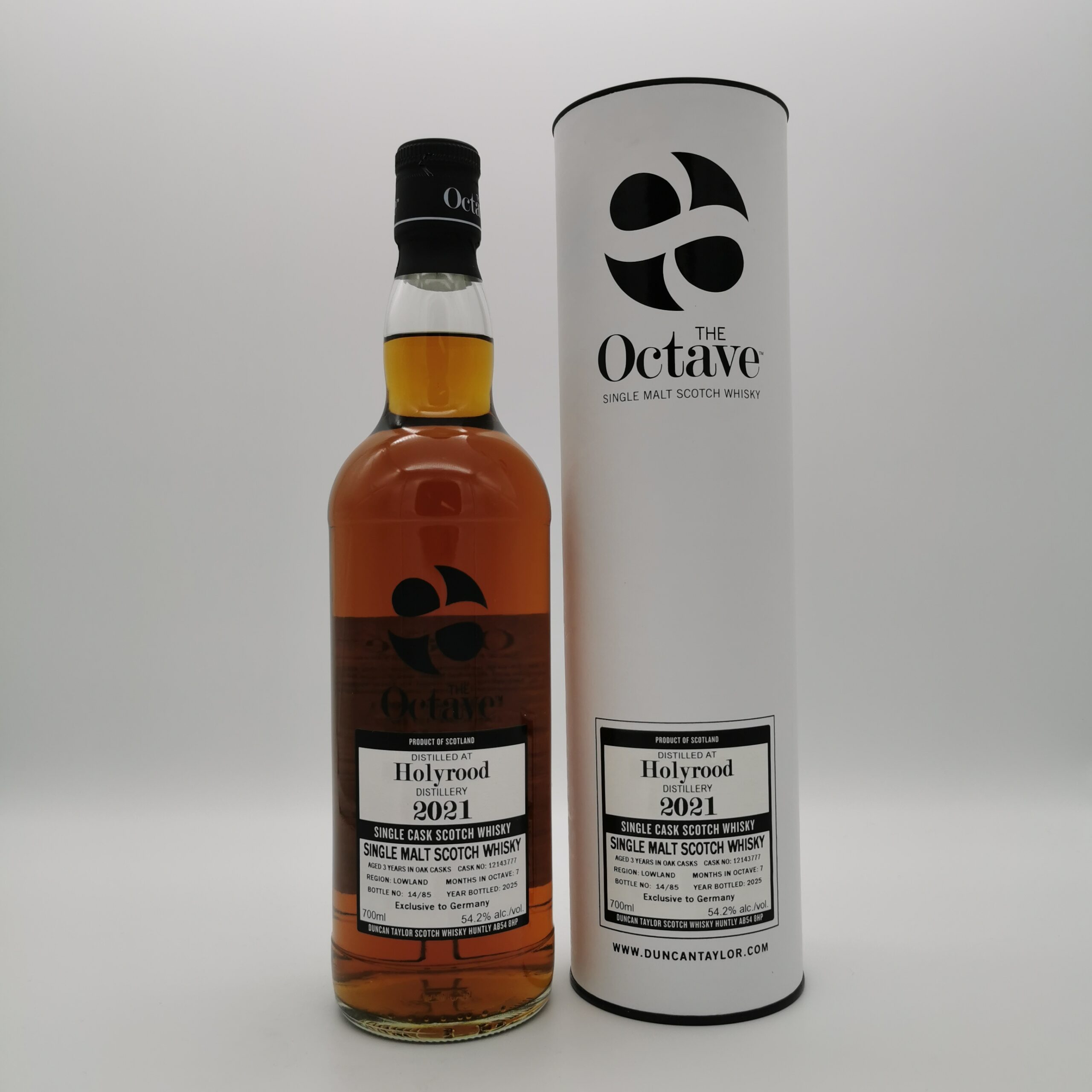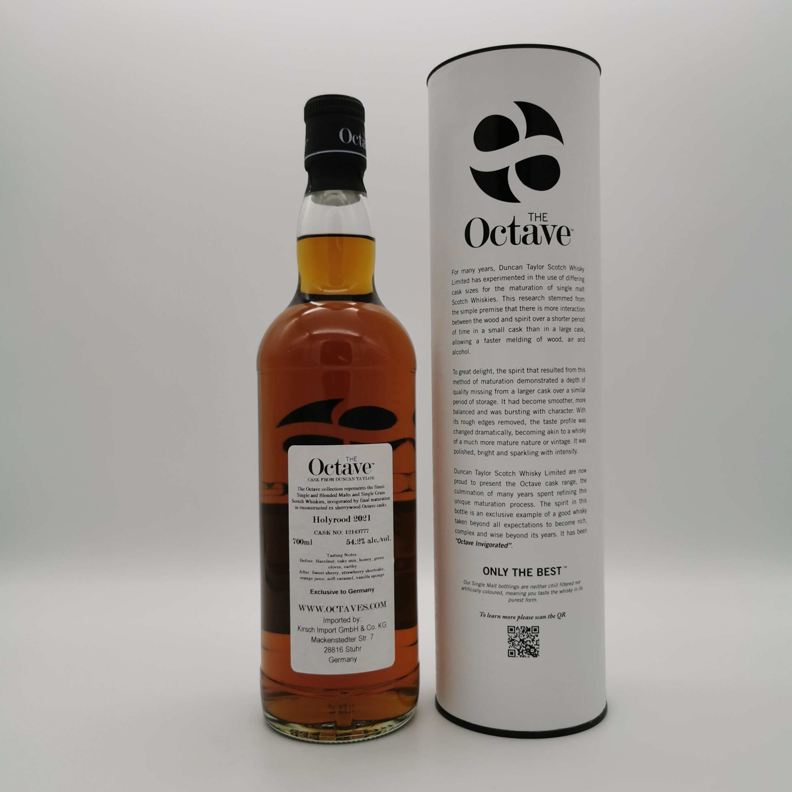 Die authentischen Abfüllungen von Duncan Taylor & Co. basieren auf einer Whiskysammlung, die zu einer der größten ihrer Art zählt. Für The Octave gönnt der unabhängige Abfüller ausgewählten Single und Blended Malts oder Single Grains in den ca. 50 Liter fassenden Sherry-Oktav-Fässern ein mehrmonatiges Finish – und erzielt so ausgesprochen raffinierte, ausgewogene Geschmacksprofile.