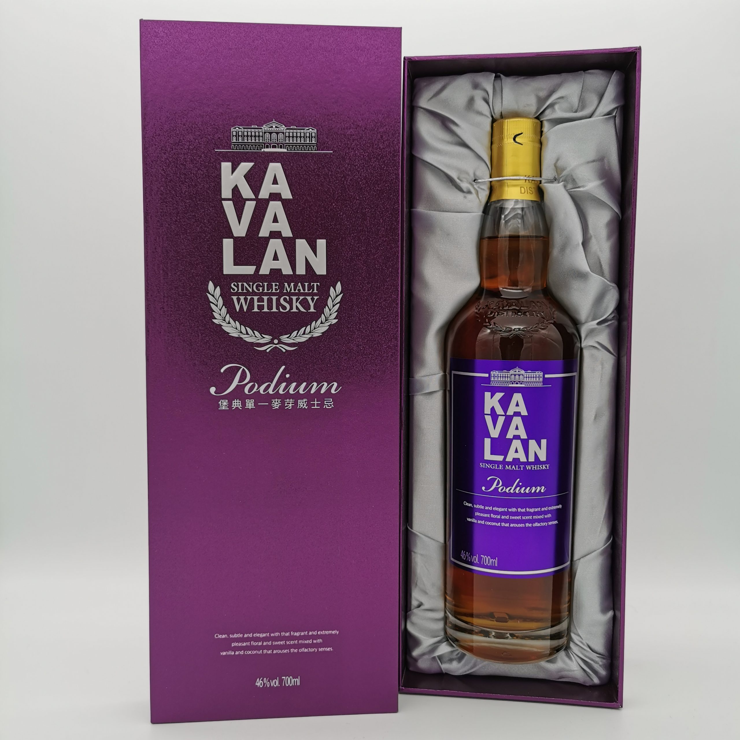 Dieser Kavalan Podium stammt aus der Kavalan Brennerei in Taiwan. Er wurde zum vierjährigen Jubiläum der taiwanesischen Brennerei kreiert. Er reifte in neuen amerikanischen Eichenfässern in Kombination mit verschiedenen Kavalan Refill-Fässern.. Die Abfüllung erfolgt in Batches und wird aus einer größeren Anzahl ausgesuchter Fässer im Altersbereich von 4-6 Jahre kreiert. Er kommt weder kühlgefiltet, noch gefärbt in die Flasche.