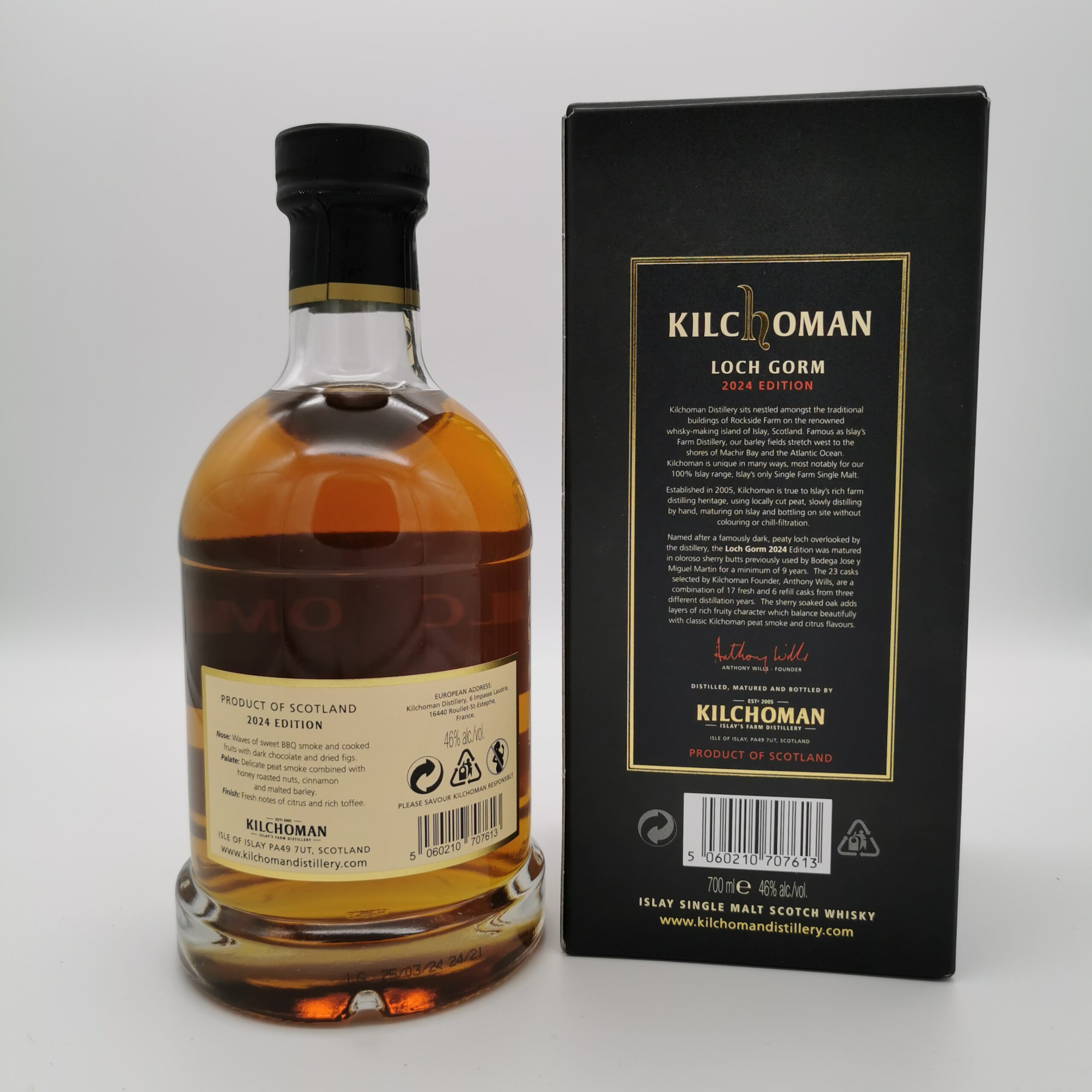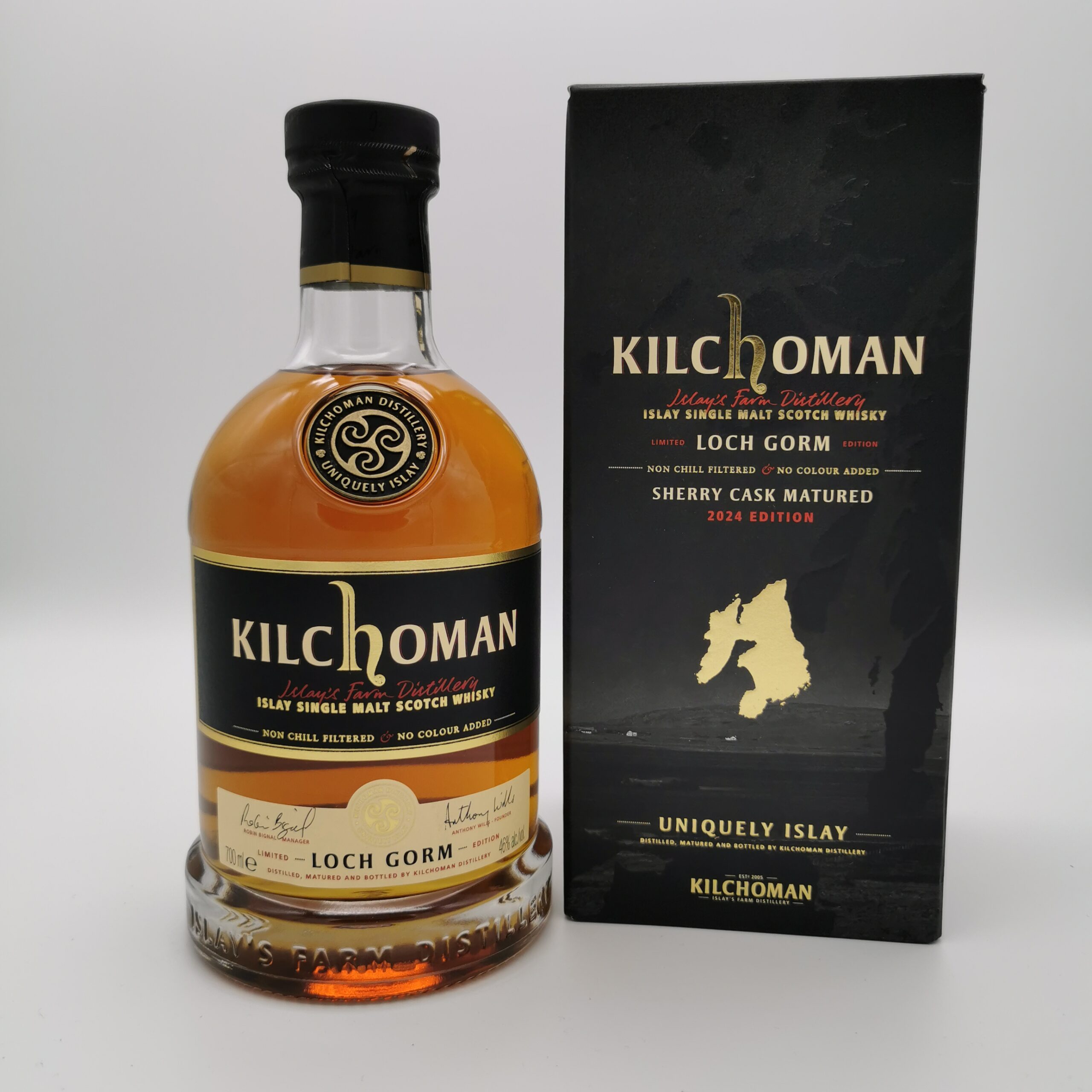 Dieser Loch Gorm Edition 2024 ist eine Besonderheit, denn er ist die einzige Abfüllung von Kilchoman, die ausschließlich in Sherry-Fässern reifte. Seinen Namen hat er von einem See unweit der Brennerei, an den die üppige Farbe dieses sherryfass-gereiften Single Malts erinnert. Der Single Malt wurde in 23 Oloroso Sherry Butts gereift, die von der renommierten Bodega José y Miguel Martín stammen, von der auch Glenfarclas ihre berühmten Sherryfässer bezieht und überzeugt mit intensiven Sherry-Aromen. Das jüngste Fass, in welchem der Loch Gorm 2024 jahrelang reifte, ist nur knapp unter 10 Jahren und somit ist die diesjährige Abfüllung des Loch Gorms die älteste Edition, die Kilchoman bisher veröffentlicht hat.