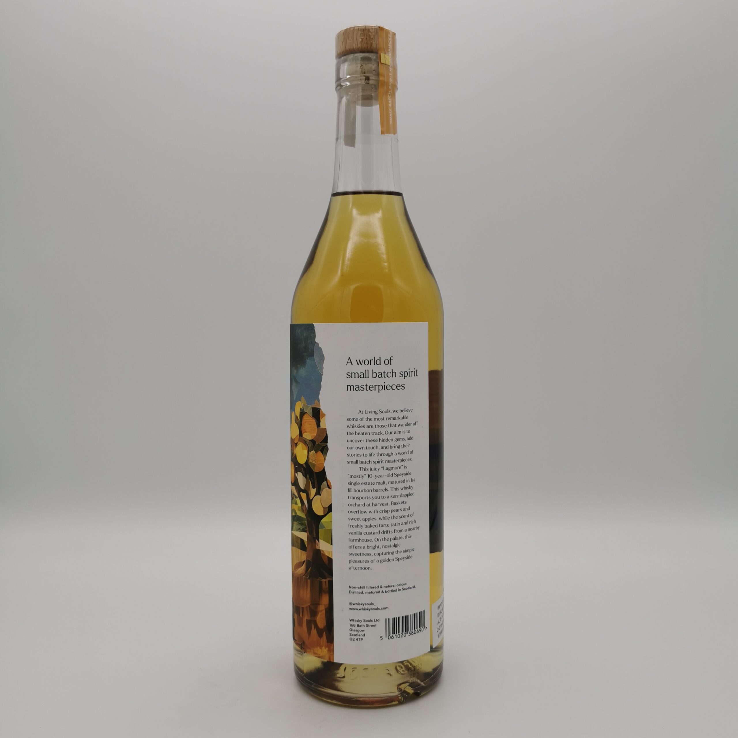 Dieser Lagmore 10 Jahre wurde von Living Souls einem neuen unabhängigen Abfüller aus Schottland abgefüllt. Hinter dem unabhängigen Abfüller „The Living Souls“ steckt ein junges, dreiköpfiges Team aus Glasgow, welches mit großer Expertise und Erfahrung und dadurch auch mit exzellenten Verbindungen aufwarten kann. Das Dreigestirn besteht aus Calum Leslie – ehemals Head of Innovation der Loch Lomond Group, Jamie Williamson – Gründer des UK Großhändlers Kilninian Spirits und lange Jahre bei Douglas Laing tätig und John Torrance – 20 Jahre Erfahrung in der Industrie u.a. bei Diageo und Tullibardine.