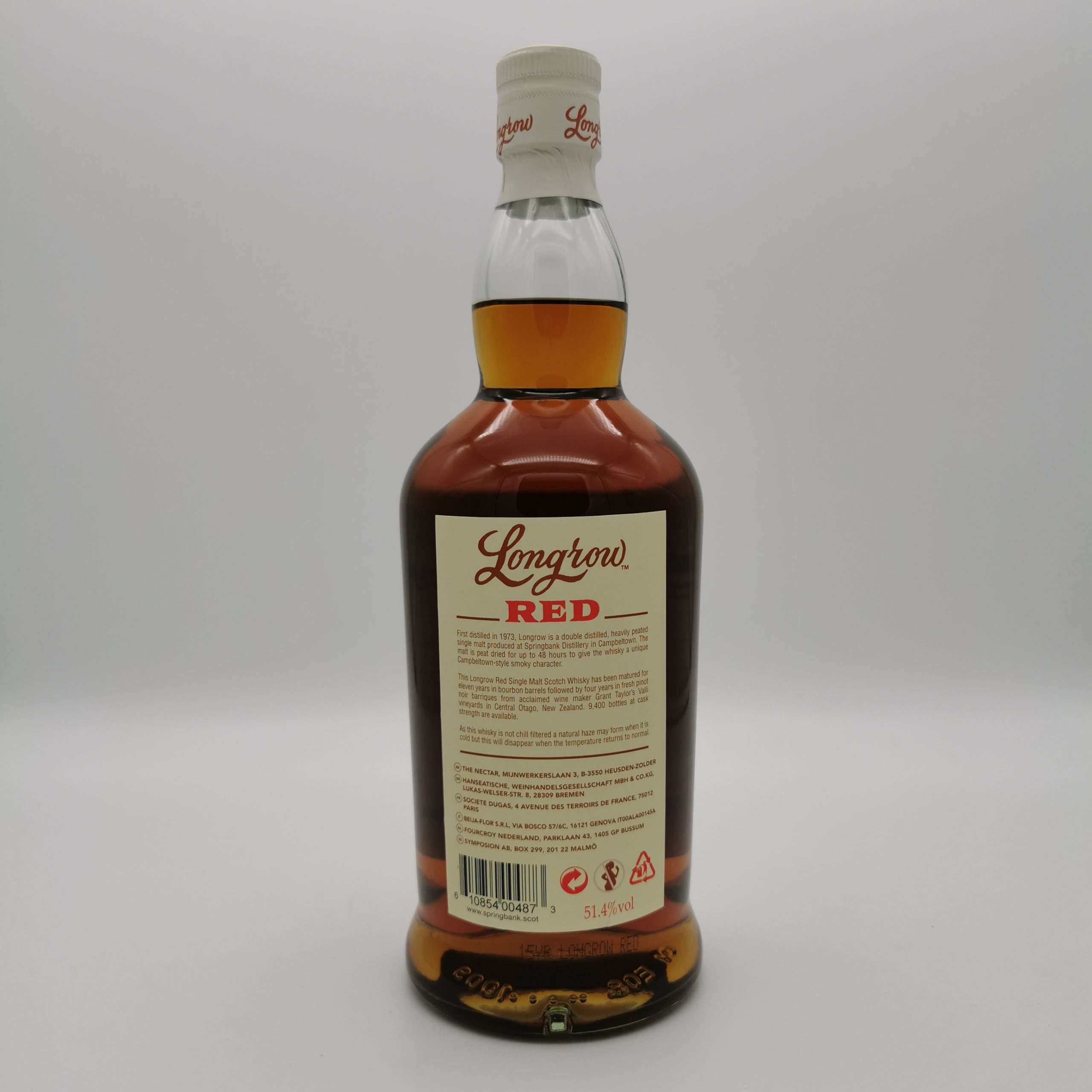 Dieser Longrow Red 15 Lahre Pinot Noir Cask Matured limited Edition 2022 reifte zuerst 11 Jahre lang in Bourbonfässern, bevor er dann in einem vier Jahre langen Finish in Pinot Noir Rotweinfässern aus Neuseeland veredelt wurde.