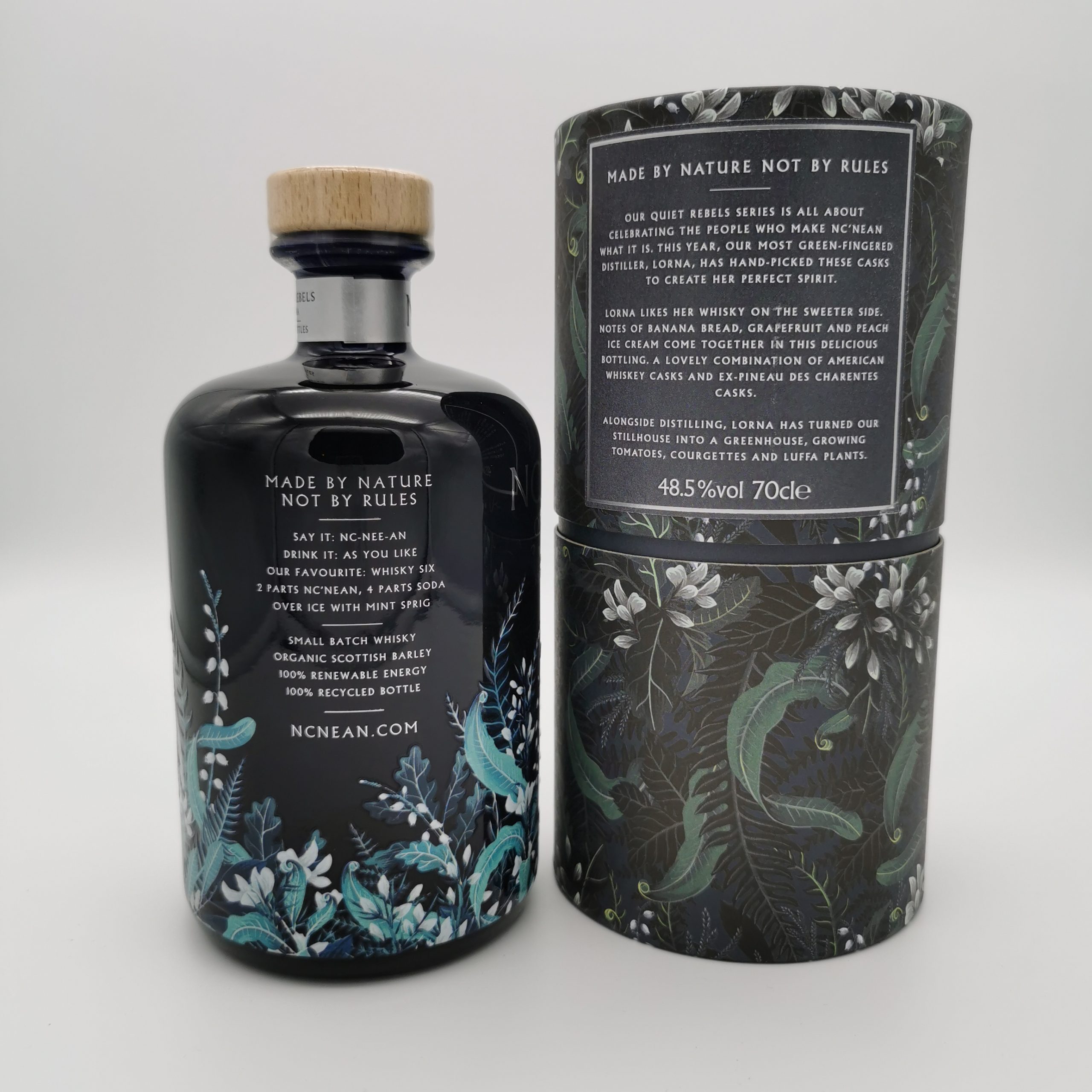 Im Fokus des zweiten Releases der Reihe steht Lorna Davidson, Team-Mitglied der ersten Stunde. Der auf 7.560 Flaschen limitierte Nc’nean Quiet Rebels – Lorna macht sich die Vorliebe der Brennerin für süße Whiskys zunutze und präsentiert köstliche Noten von Bananenbrot, Grapefruit und Pfirsich-Eiscreme. Der Organic Single Malt Scotch Whisky reifte in einer Kombination aus Bourbon Casks und Pineau-des-Charentes-Fässern. Die mit dem süß-säuerlichen Likörwein aus Frankreich vorbelegten Fässer ergänzen die weiche Süße der amerikanischen Eiche um helle und exotische Früchte.