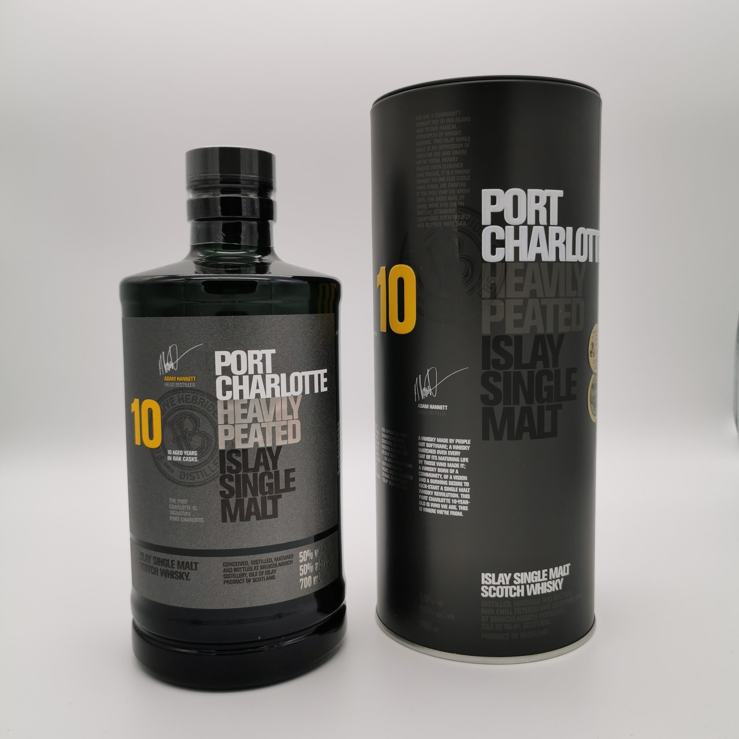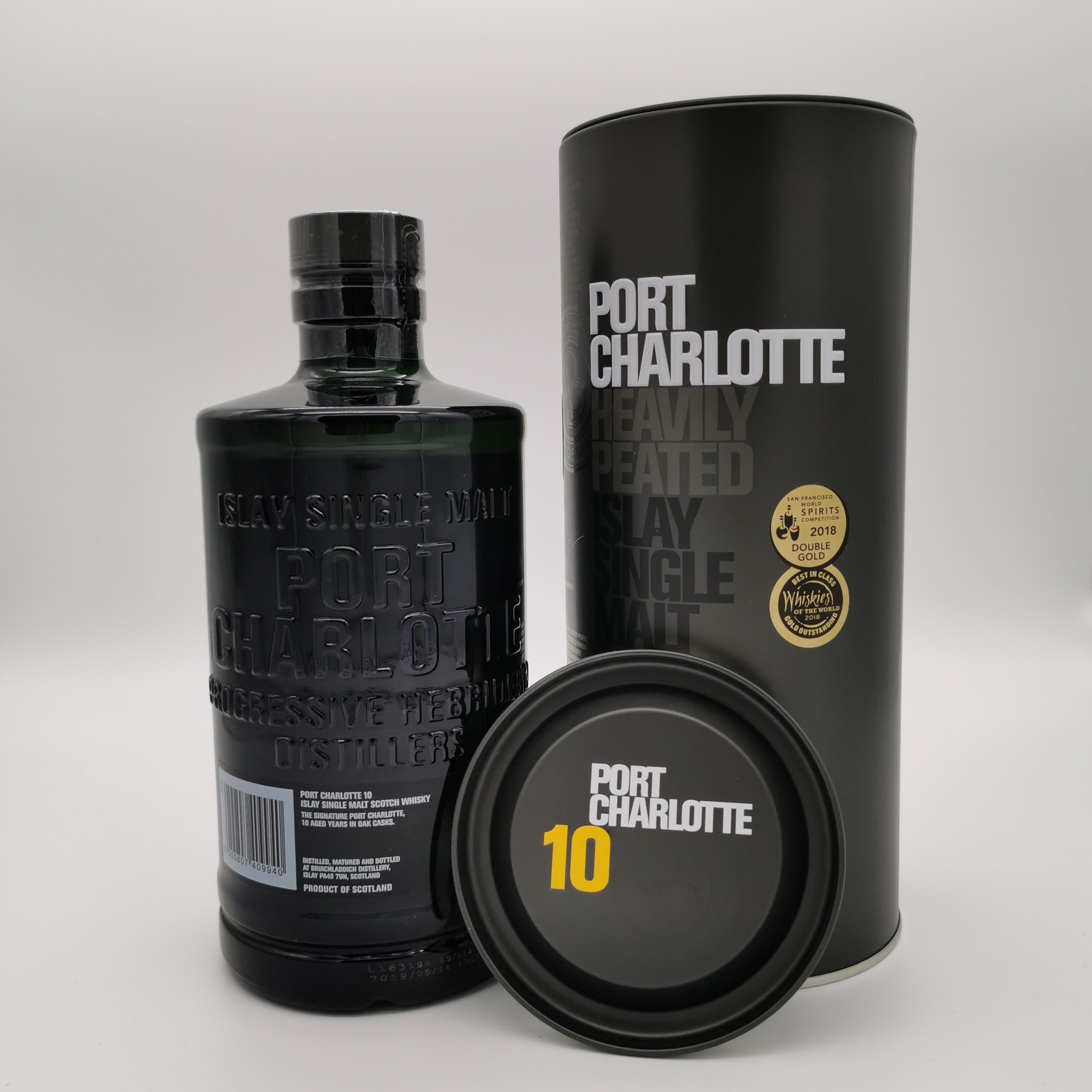 Dieser 10-Jährige Port Charlotte gehört zur Neuauflage der Islay-Marke. Der Port Charlotte 10 Jahre gehört der Standartrange an und beendet die lange Strecke von NAS Abfüllung von Port Charlotte und bringt endlich wieder eine Flasche mit Altersangabe auf den Markt. Er ersetzt den bisher alterslosen Scottish Barley. Die Lagerung erfolgte zu 65 % in First Fill- und zu 10 % in Refill Ex-Bourbonfässern sowie zu 25% in ehemaligen französischen Weinfässern. Er kommt in neuer Flaschenform mit einer schönen Prägung daher.