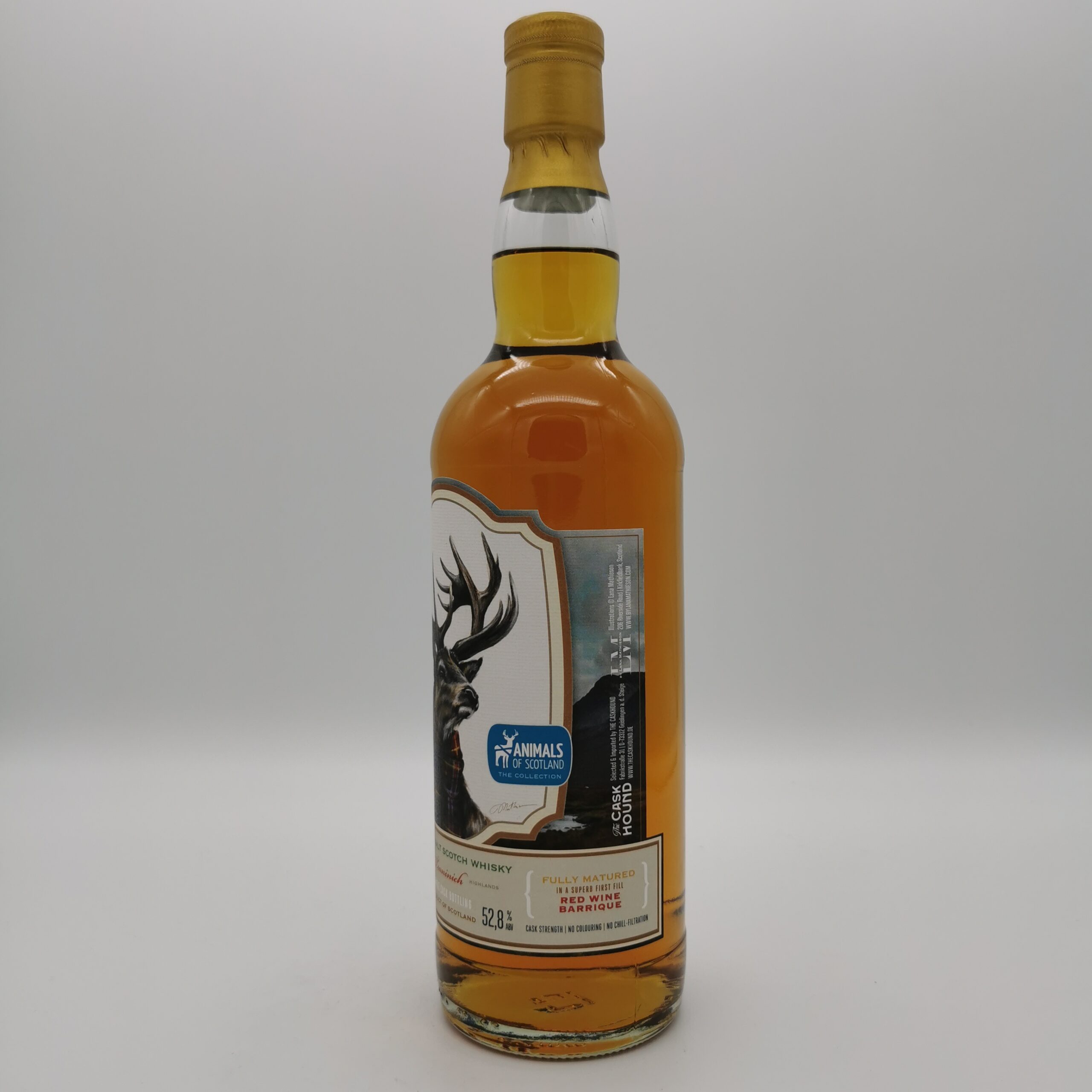 Dieser 13-jährige Teaninich ist die zweite Abfüllung der neuen Animals of Scotland Reihe by Lana Mathieson. Er reifte seine volle Zeit im Red Wine Barrique #29471 und ist auf nur 367 Flaschen limitiert.