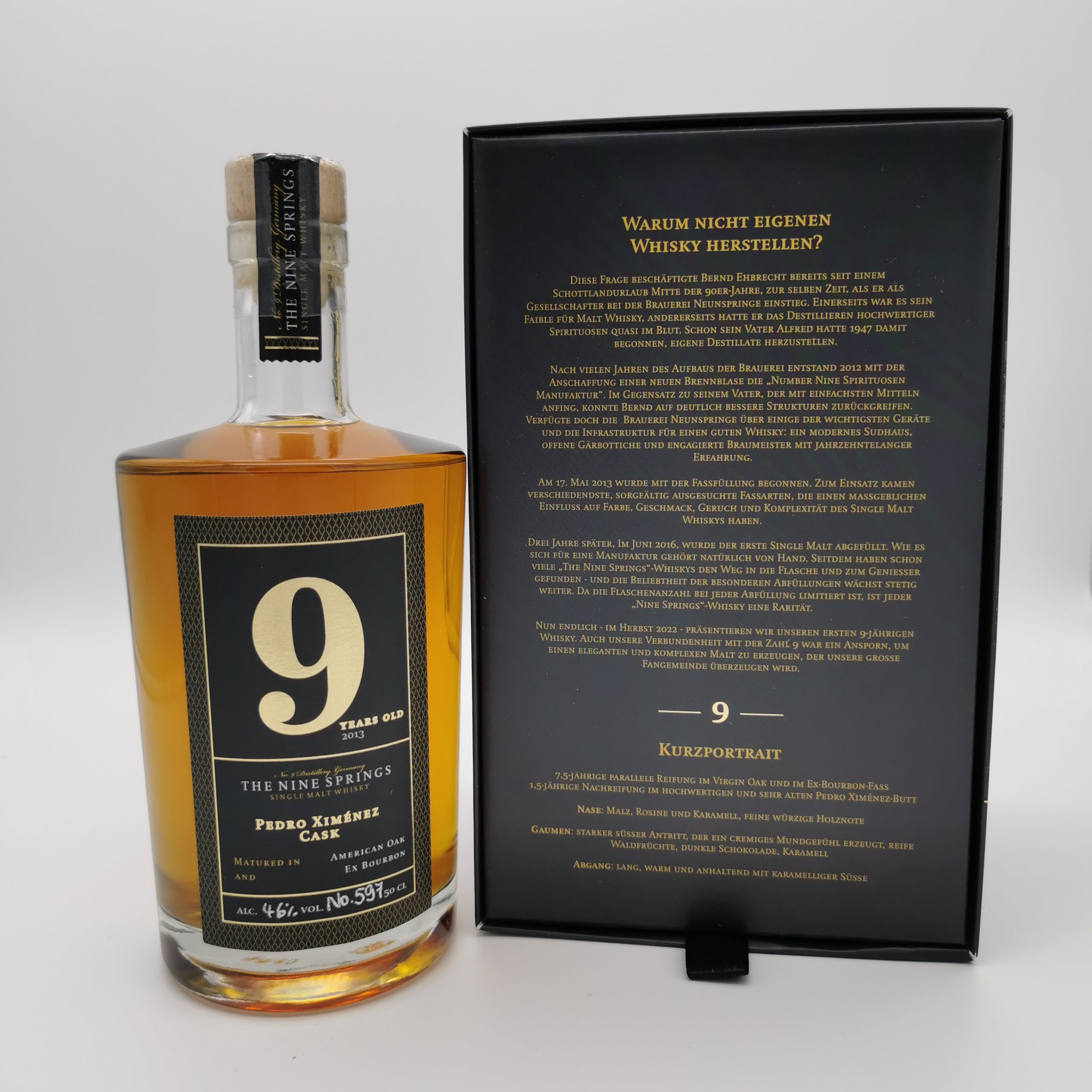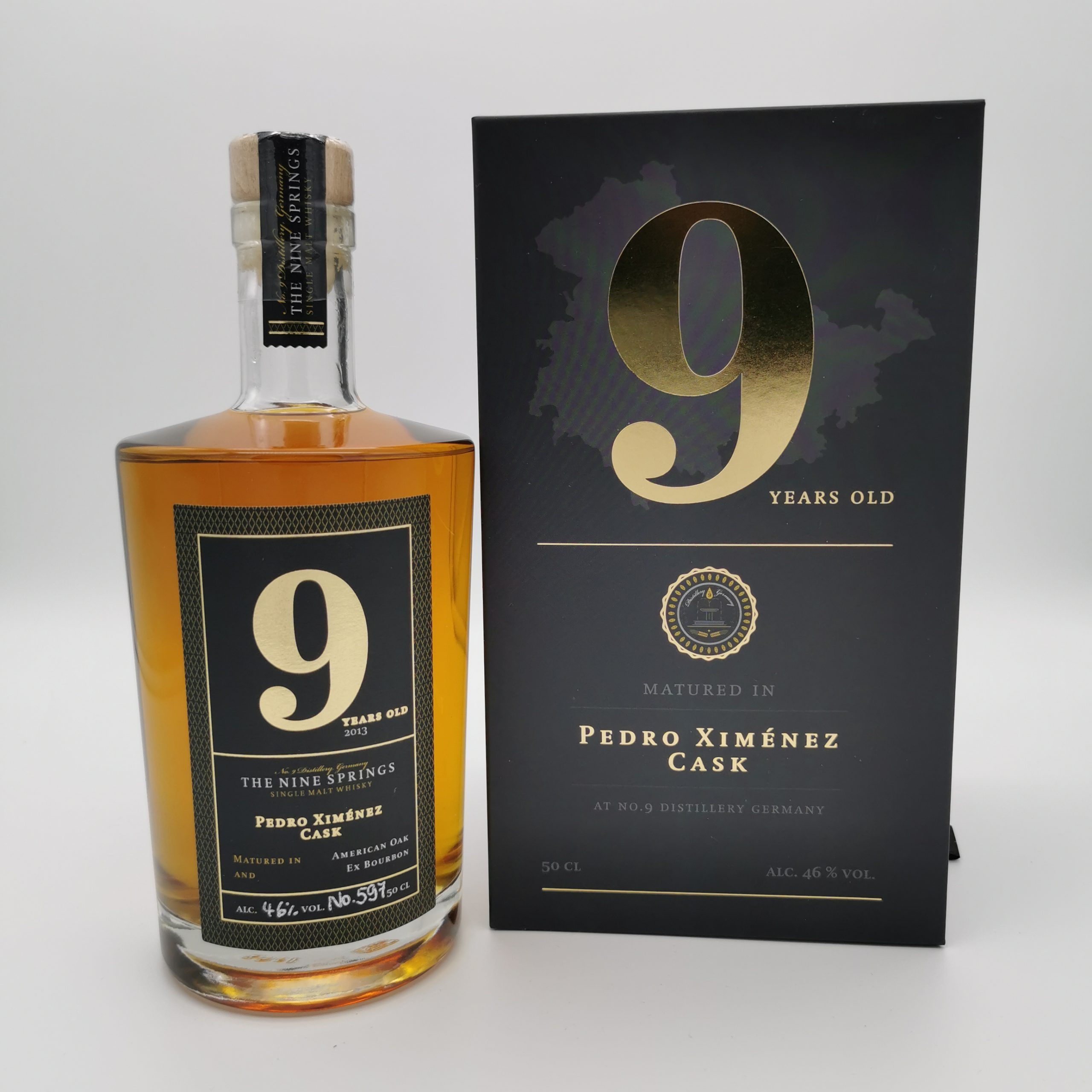 Dieser The Nine Springs 9 Jahre Pedro Ximénez Cask reifte zuerst in ehemaligen Bourbon Fässern und erhielt dann ein Finish in einem sehr alten Pedro Ximénez Sherry Butt.