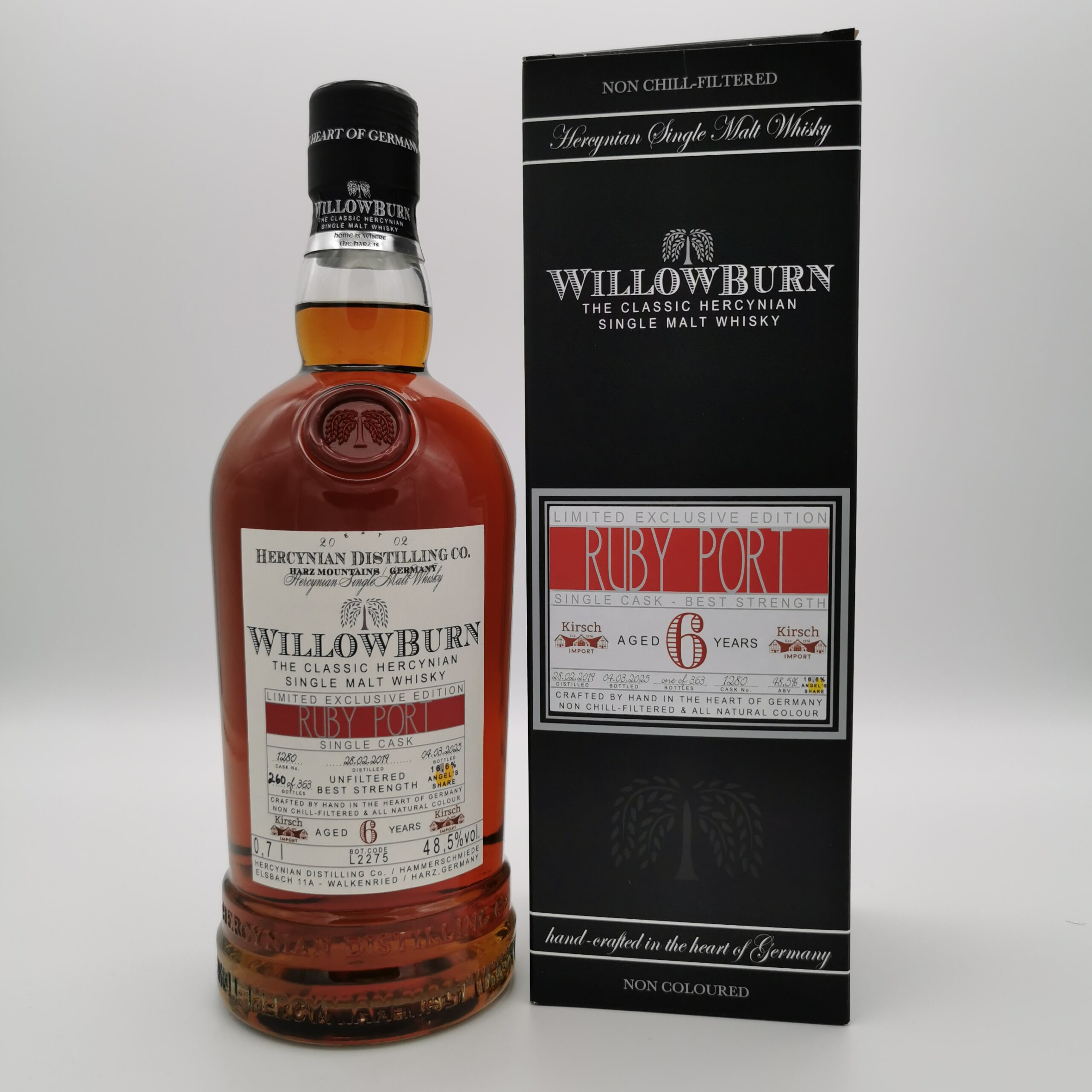 Dieser WillowBurn Ruby Port 2019/2025 ist ein Single Cask, das sechs Jahre lang bei einem hohen Angels‘ Share von 16,6 Prozent im Fasslager der Destillerie reifte und exklusiv für Kirsch-Import abgefüllt wurde. Wer eine der limitierten 363 Flaschen für sich sichern kann, darf sich auf den köstlichen Effekt freuen, den die süßeste Portweinsorte im Single Malt entfaltet.